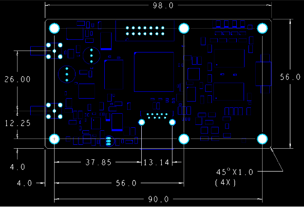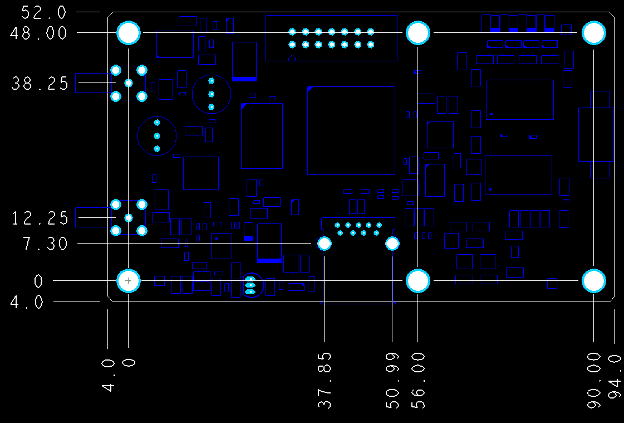 Figure 1. Using the board origin as the datum for the dimensions is good when you start at a hole that is part of a pattern of mounting/tooling holes. Dimension values correspond with the XY position of the hole or other feature. The board edge can be more of a tolerance issue since V-score and mouse-bite processes are not as precise as drilling holes. Image Credit: Author
