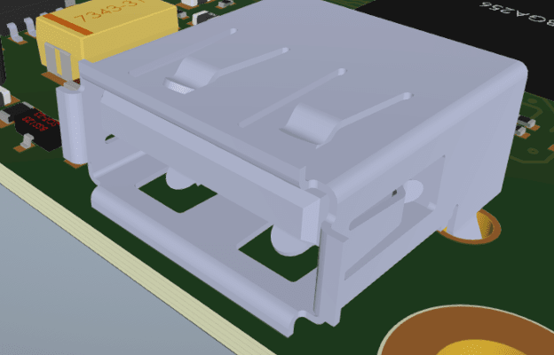 Figure 4. The USB connector pins are the springy type that zig-zag through the board. It’s not quite press-fit, but it does take some force to insert it. The way we yank on those cords is reason enough for a solid build. Image Credit: Author