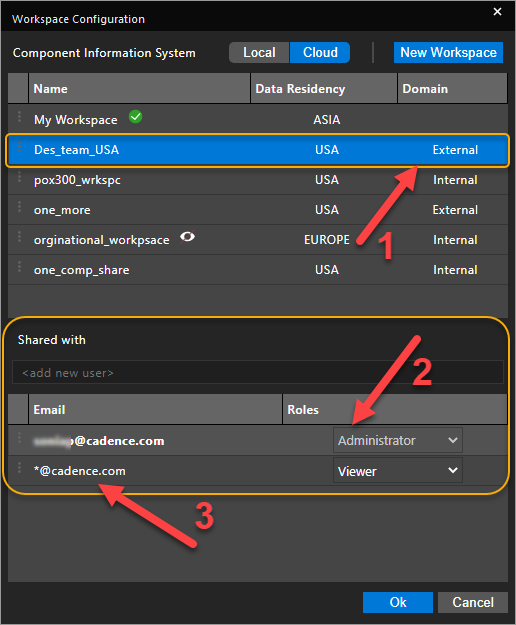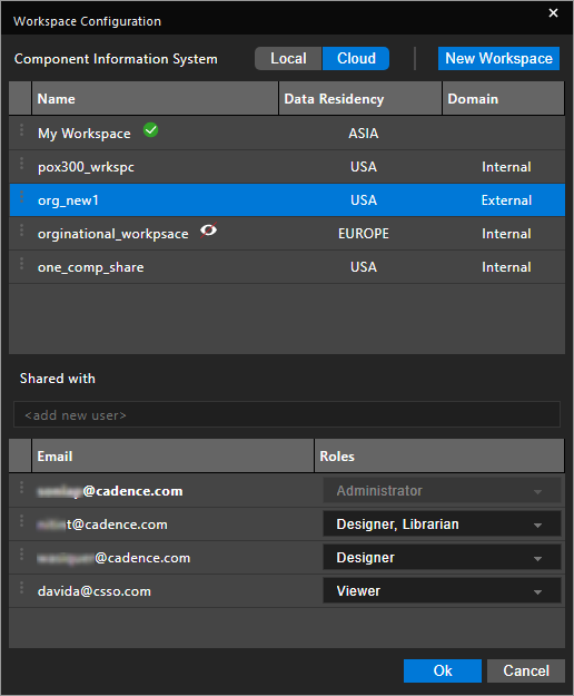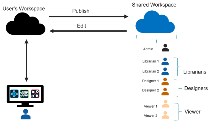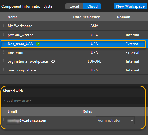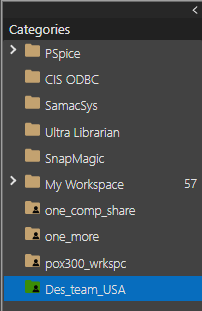 With the OrCAD X Professional (POX200 Pro) and OrCAD X Professional Plus (POX300) licenses, OrCAD X Capture provides a collaborative development environment where you can create shared workspaces containing work-in-progress components, designs, and library and project files. With this license, you can share workspaces and provide users access rights to the shared workspaces. A workspace in Capture is a OrCAD X OnCloud-based project storage location that is used to manage all the design data, which includes categories (templates) and components, and design, library, project, and board files. You can manage the files in workspaces from File Manager and components from Component Explorer.