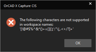 The name of the workspace. This field cannot be blank. You can use any combination of alphanumeric characters for a workspace name. However, not all special characters are supported. The following message pops up if you specify any unsupported character in this field: