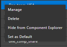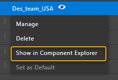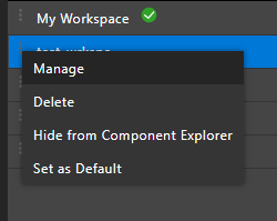 - Similarly, to show the workspace, right-click the workspace name and choose Show in Component Explorer.