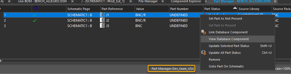 When you run the Link Database Component or View Database Component commands on a part from Part Manager or the schematic page, the component is queried from the default workspace.