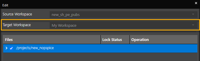 My Workspace is the default workspace for all operations. However, you can set any workspace as the default workspace. The default OnCloud workspace database is referred by Part Manager to link and update database components.