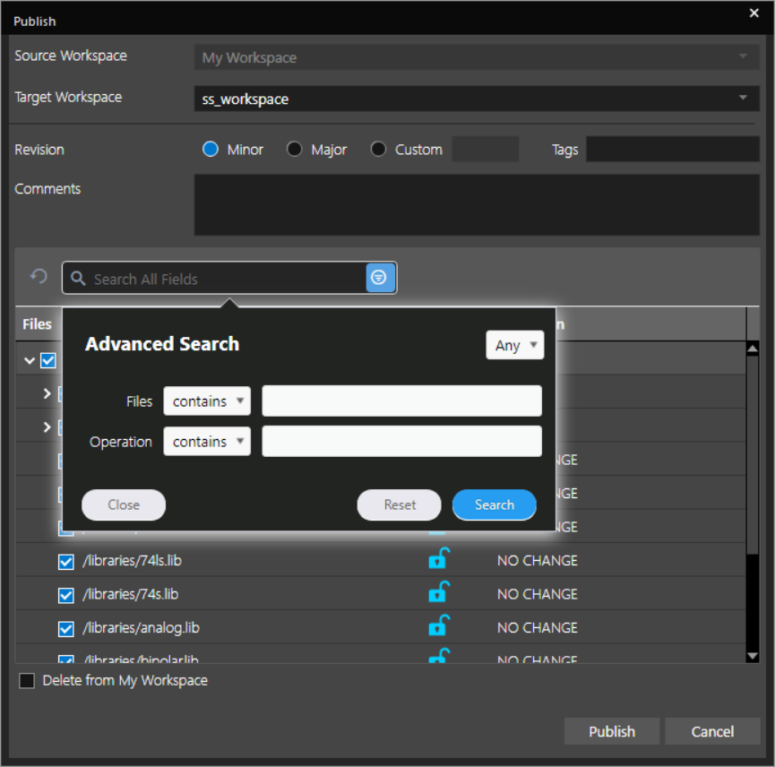 You can upload library or design files or an entire project folder to the local workspace from File Manager.