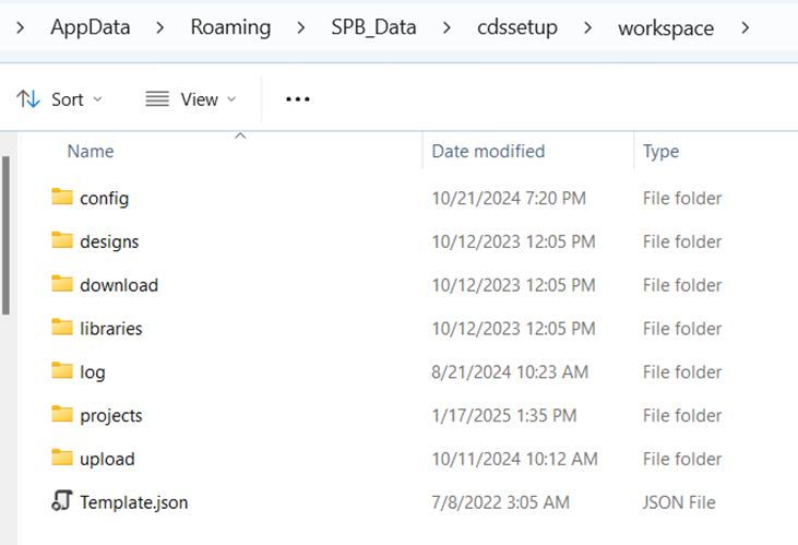 File Browser opens the location of the projects folder on the local disk: %HOME%\cdssetup\workspace\projects.