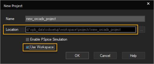 At the time of creating a new project, you can decide if you want to store the project in the OrCAD X OnCloud workspace. If you select the Use Workspace option in the New Project dialog box, the location is pre-seeded and cannot be changed: %HOME%\cdssetup\workspace\