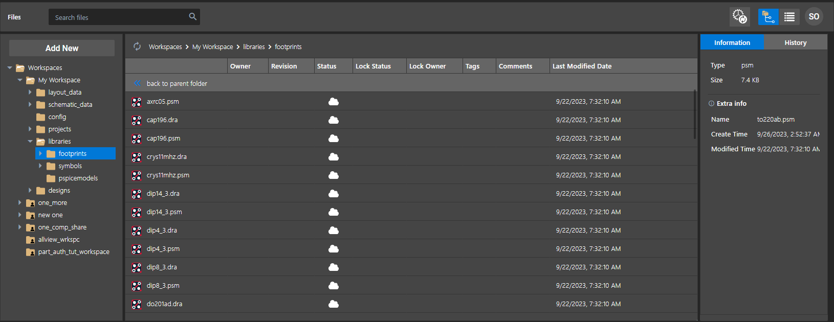 This project can be accessed from the File Manager window, which provides an interface to manage all the design files stored on OrCAD X OnCloud. For the same login credentials, the design data is automatically