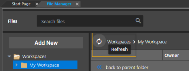- If you add a new project to the workspace, and click Refresh , the newly added project is updated in the My Workspace node on the left pane of File Manager: