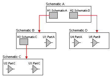 Any schematic design module can include either schematics, or VHDL or Verilog models as instantiated components. However, VHDL or Verilog design modules are limited to other modules of the same type as instantiated components. Therefore, if the root module of a design is a VHDL model, all the lower-level modules must also be VHDL modules.