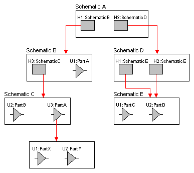 Schematic designs can include either VHDL or Verilog models, but not both as lower-level hierarchical modules. However, these models can only instantiate other models of the same type at lower levels in the hierarchy.