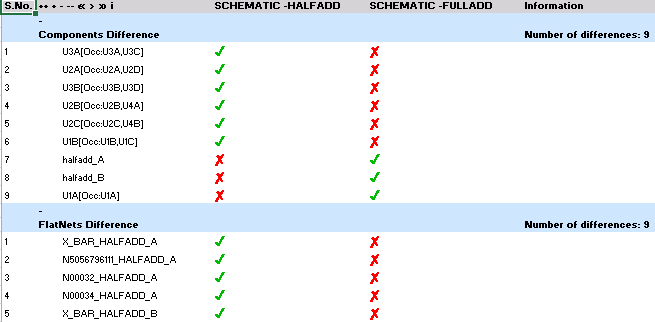 You can compare designs, schematic folders, schematic pages in Capture using the Design Differences dialog box. To access the Design Differences dialog box in Capture, select Tools - Compare Designs.