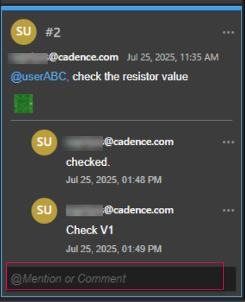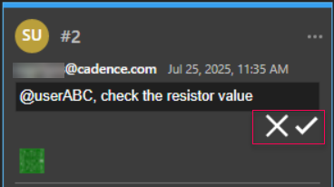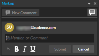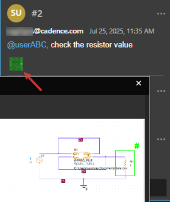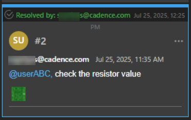 Once the comment is submitted, the markup data displays the information such as a unique comment ID, a timestamp displaying the local time zone, and a snapshot of the design (.dsn).