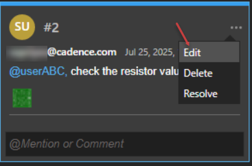 - Click the More Options icon to choose options to edit, delete, or resolve a comment.