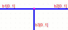 As in the case of scalar wire, consider a horizontal (or vertical) bus or NetGroup joined with another bus or NetGroup originating at the same connection point and drawn in the opposite direction. A junction dot is created if any of the following objects is placed at the point of connection of the two objects:
