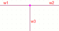 Example: Say the wire w1 is joined with the wire w2, originating at the same connection point and drawn in the opposite direction. A junction dot is created if an orthogonal wire w3 is placed at the point of connection of these two wires.