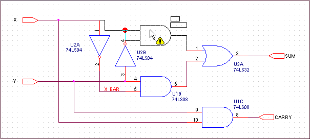 - Finally, on SCHEMATIC3:PAGE3, create off-page connectors for the signals, a, b, and y.
