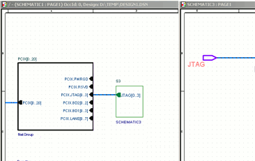 - In this case, the PCIX.JTAG NetGroup port is connected to the JTAG hierarchical port of the SCHEMATIC3 hierarchical block.