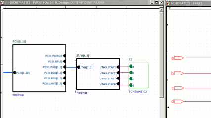 - Each NetGroup port of the JTAG NetGroup is then connected to the corresponding ports, a, b, c & d of the hierarchical block of SCHEMATIC2.