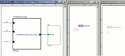 - The NetGroup port is then connected to a hierarchical port, named DES, of the SCHEMATIC2:PAGE1 hierarchical block placed on SCHEMATIC1:PAGE1.