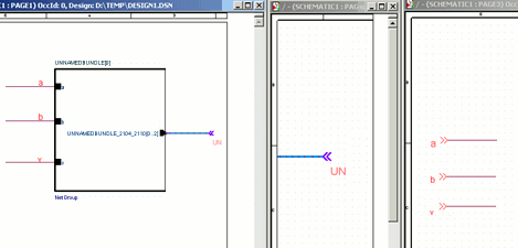 Similar to named NetGroups, you can also use un-named NetGroups to connect signals across pages in a hierarchical design. Again, as in named NetGroups, in un-named NetGroups, you can connect signals across a page at the same level of a hierarchical design or across pages in a flat design.