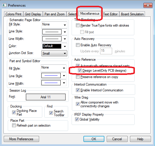 - If you are using the Refdes control required option for a project, the Auto reference placed part option in the Miscellaneous tab of the Preferences dialog box does not honor the range specified in the grid.