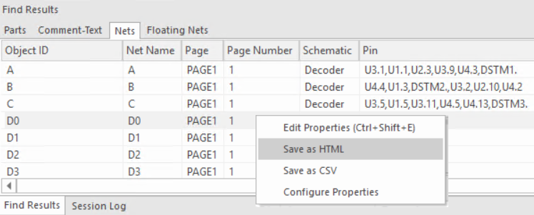 - Right-click on the Project manager and choose Reports – Export Placement.