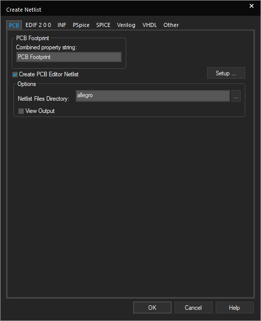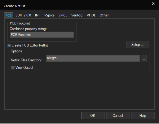 - Ensure that the Create PCB Editor Netlist check box is selected.