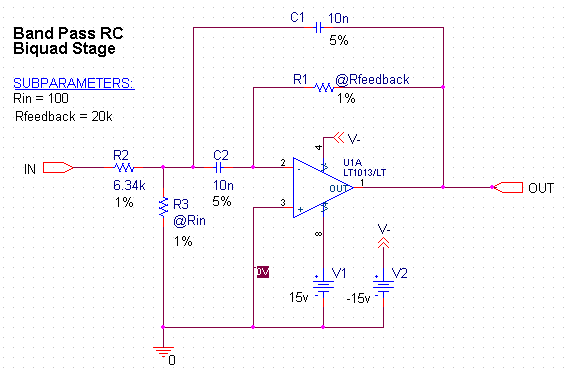 Notice the Rin and Rfeedback values are preceded with @ symbols, indicating that these parameters are substituted with values passed down from the top-level schematic.