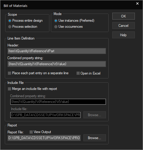 If required, you can also include the footprint information for the parts in the Bill of Materials (BOM) generated for your design. To generate a custom BOM with footprint information, perform the following tasks:
