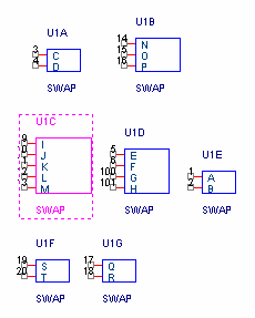 If a reuse module contains another reuse module as part of its external design, then the netlister assigns a REUSE_PID value to every component in each package of the external design. The value of the REUSE_PID is the same as the value of the component's previous REUSE_ID. A new REUSE_ID value is then assigned to each module. This way, occurrences of the same module will have different REUSE_IDs on them, but the same REUSE_PIDs for corresponding components. Using REUSE_IDs, makes it possible for Capture to propagate changes to lower levels of a reuse module. |