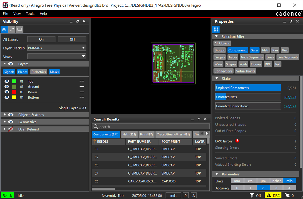 The Allegro Free Physical Viewer opens showing the selected board file.